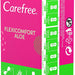 Carefree FlexiComfort panty liners come in a cardboard box ideal for storing in the bathroom