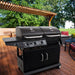 • Gas grilling is 36,000-BTU three burner grill