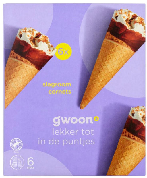 Waffle with cocoa fantasy, filled with vanilla flavored whipped ice cream and a topping of cocoa fantasy and sugared hazelnuts.