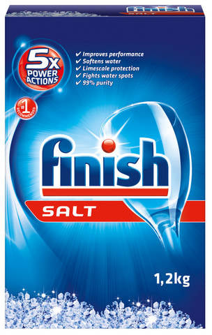 To avoid water marks on your dishes, dishes must be washed with soft water. Finish Salt effectively softens your water to boost the cleaning perfor...