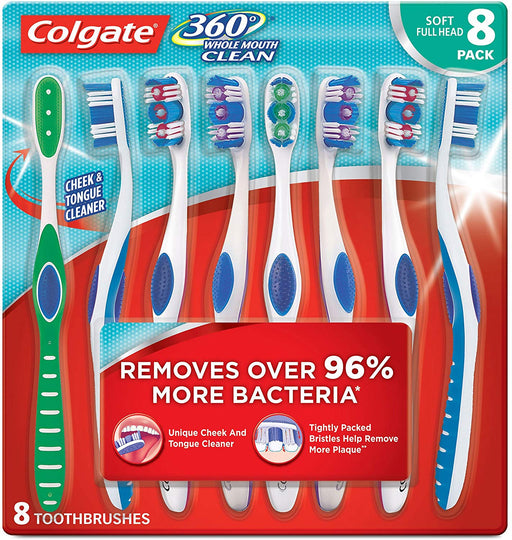 View full detailsColgate 360 Degrees Soft Full Head Toothbrushes, 8-Pack, 8 ct