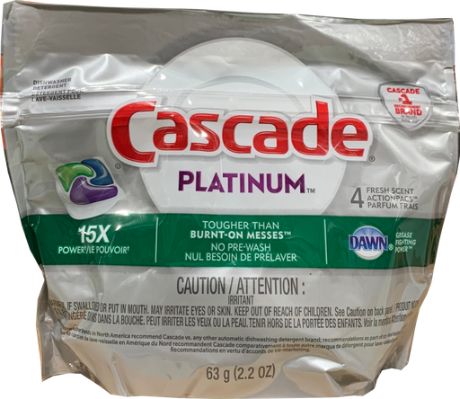 View full detailsCascade Platinum Dishwasher Detergent Actionpacs, Fresch Scent, 4 ct