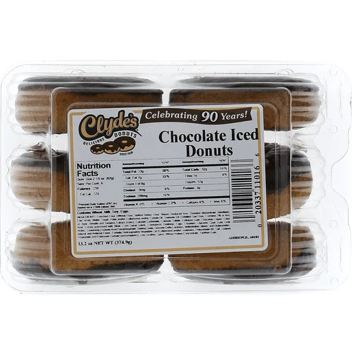 View full detailsClydes Chocolate Iced Donuts , 6 ct