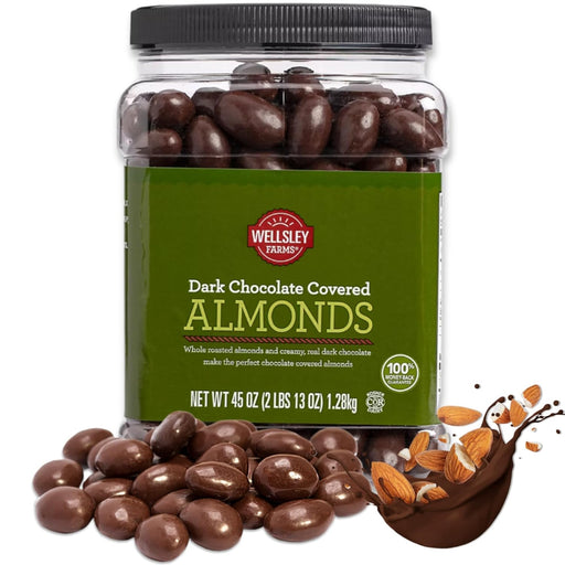 RICH DARK CHOCOLATE COATED ALMONDS: Experience the decadent blend of premium dark chocolate covering whole roasted almonds for a satisfying snack....