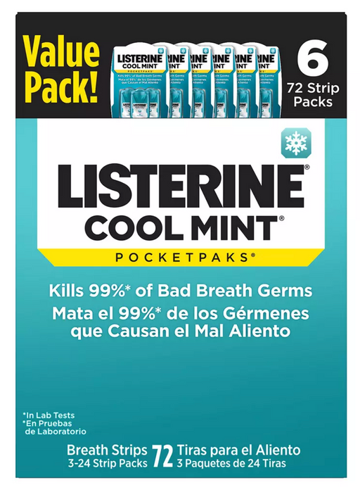 Listerine Pocket Paks Breath Strips dissolve instantly, freshening your breath by killing 99% of bad-breath germs.These convenient strips are sugar...