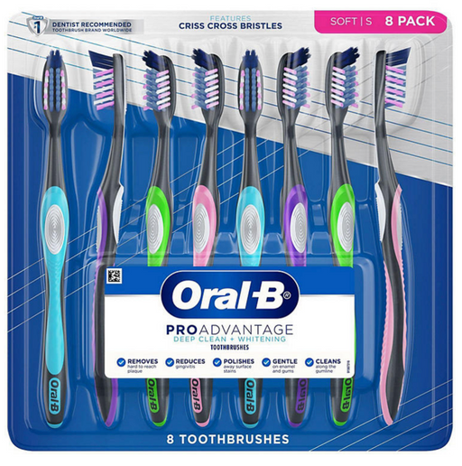 Oral-B Pro Advantage Deep Clean + Whitening Toothbrushes, Soft or Medium , 8 ct