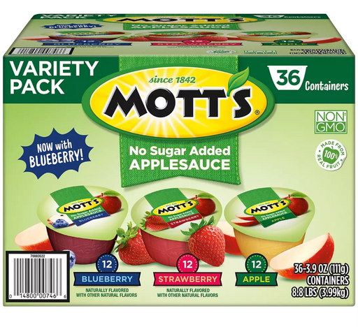 View full detailsMott's No Sugar Added Applesauce Cups, Variety Pack , 36 x 3.9 oz