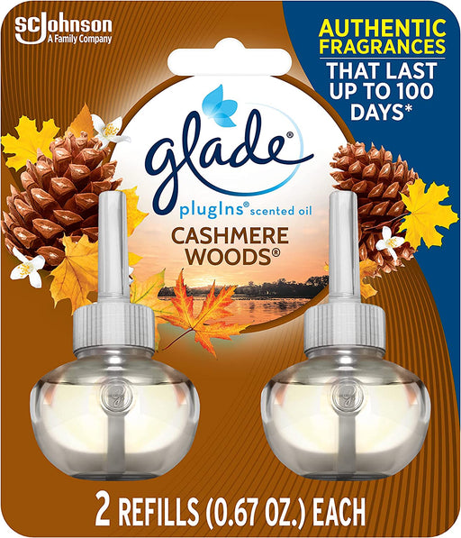 View full detailsGlade PlugIns Refills Air Freshener, Scented and Essential Oils for Home and Bathroom, Cashmere Woods, 2 x 0.67 oz