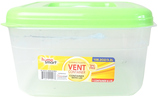 Home Smart Durable Plastic Vent Container With Light Green Lid , 3.2 L