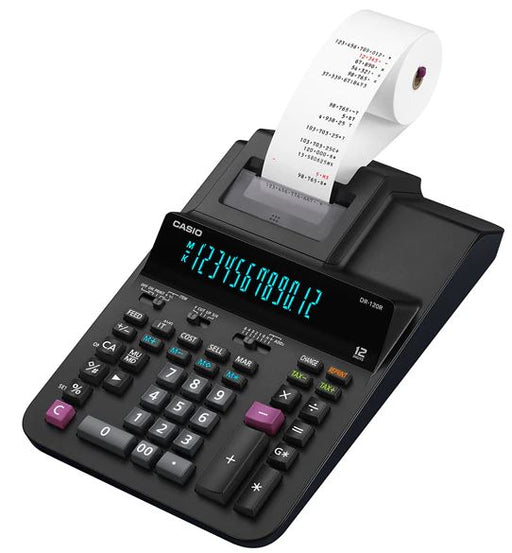 Casio DR-120R Printing Calculator, 2-Color Print, 3.5 Lines/Sec - This desktop printing calculator prints 3.5 lines per second with two-color print...