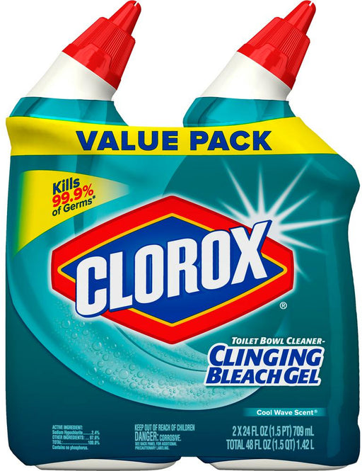 Clorox Toilet Bowl Cleaner Clinging Bleach Gel, Cool Waves Scent, 2 x 24 oz