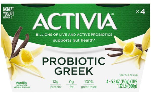Danon Activia Nonfat Probiotic Vanilla Greek Yogurt , 4 x 5.3 oz