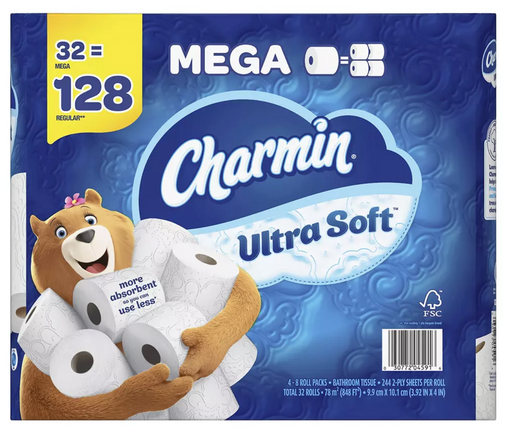 View full detailsCharmin Ultra Soft Toilet Paper Mega Rolls, 32 ct