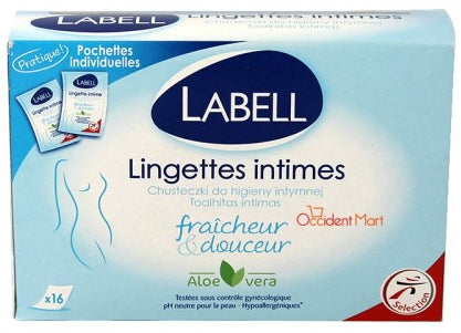 Labell Intimate Wipes, Aloe Vera, 16 ct