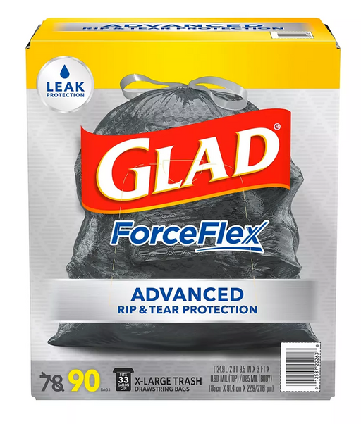 Glad ForceFlex Advanced Drawstring Large Trash Bags, 33 Gallon , 90 ct