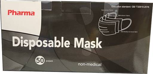 Pharma 3 Layer Disposable Face Mask, Black , 50 ct