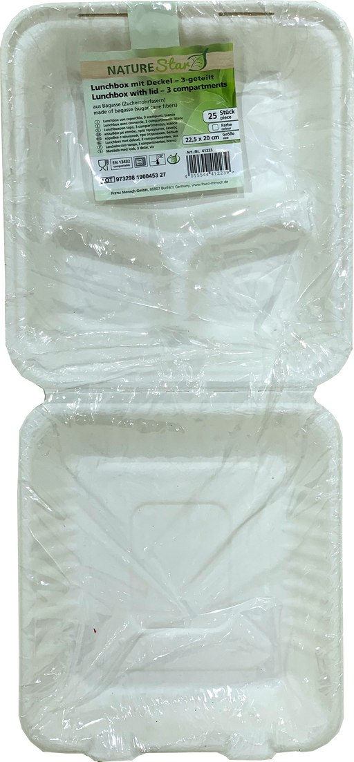 Nature Star Biodegradable Lunchbox With Lid, 3 Compartments, 22.5 x 20 cm