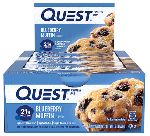 Indulge your blueberry breakfast muffin cravings! The Quest Blueberry Muffin Protein Bar lets you take a bite out of your urges, complete with chew...