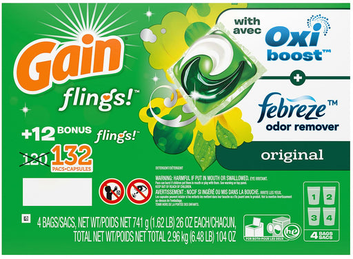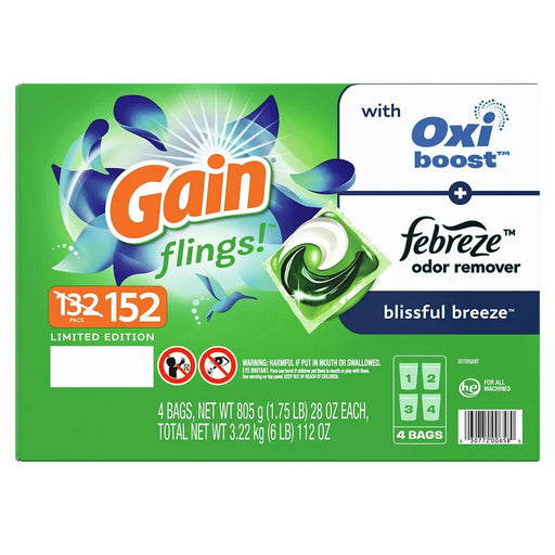 View full detailsGain Flings With Oxi-Boost & Febreze Detergent Pacs, 132 ct