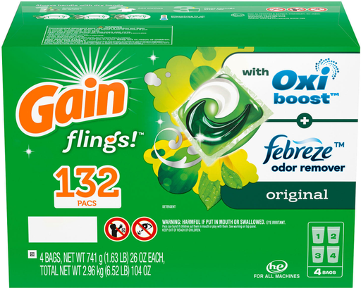 View full detailsGain Flings With Oxi Boost & Febreze Original Laundry Detergent Pacs, 152 ct