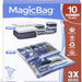 Triple your storage space with this value pack of ten vaccum compression bags. This set of 10 includes: 3 Flat Medium, 3 Flat Large, 2 flat XL and 2 Travel Large. The airtight one way valve with universal diameter valve fits almost all vacuum hoses. These bags will protect against dirt, odor, insects, and mildew.