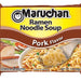 Enjoy an instant hot meal with the Maruchan Ramen Pork Flavor Noodle Soup. This trans fat-free noodle soup is super affordable and satisfying. It takes just three minutes to prepare this savory comfort food. Try adding vegetables or meat to this instant noodle soup for variety, or use the noodles to create Asian-inspired salads and side dishes. Maruchan Ramen Noodle Soup, Pork Flavor, 3 Oz