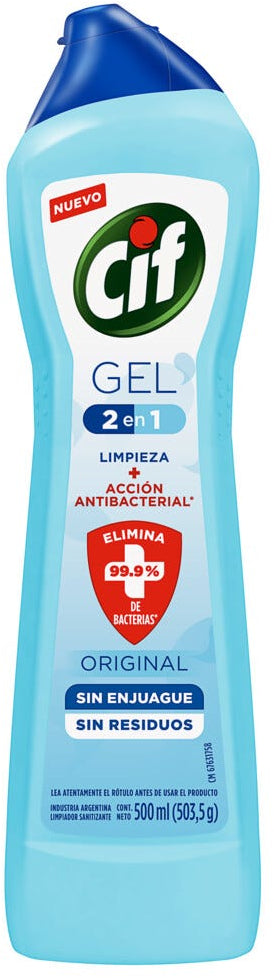 Cif Gel 2 in 1 Original Cleanser gives you Cleaning + Antibacterial Action. The Cif antibacterial gel will help you eliminate 99.9% of bacteria. Clean and disinfect with a single antibacterial product, in the most practical and easy way. Ensure the disinfection of your home with CIf gel cleaner. Cif cleaners prevent bad odors in the bathroom and kitchen. Its new translucent light gel formula, without bleach, quickly cleans all the surfaces of your home.