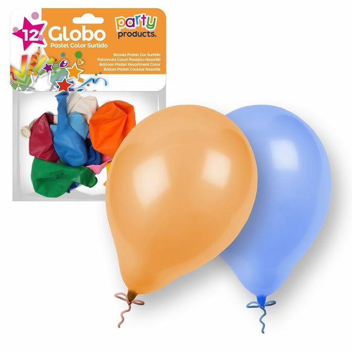 Party Products 23 cm Assorted Balloons, Pastel Colors, 12 ct